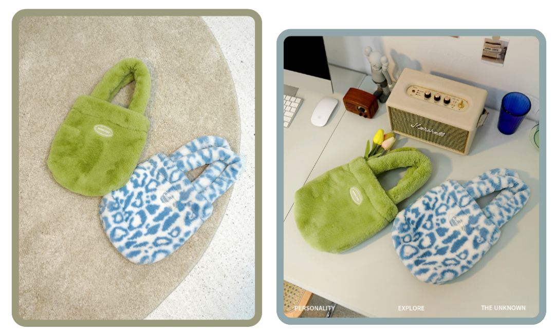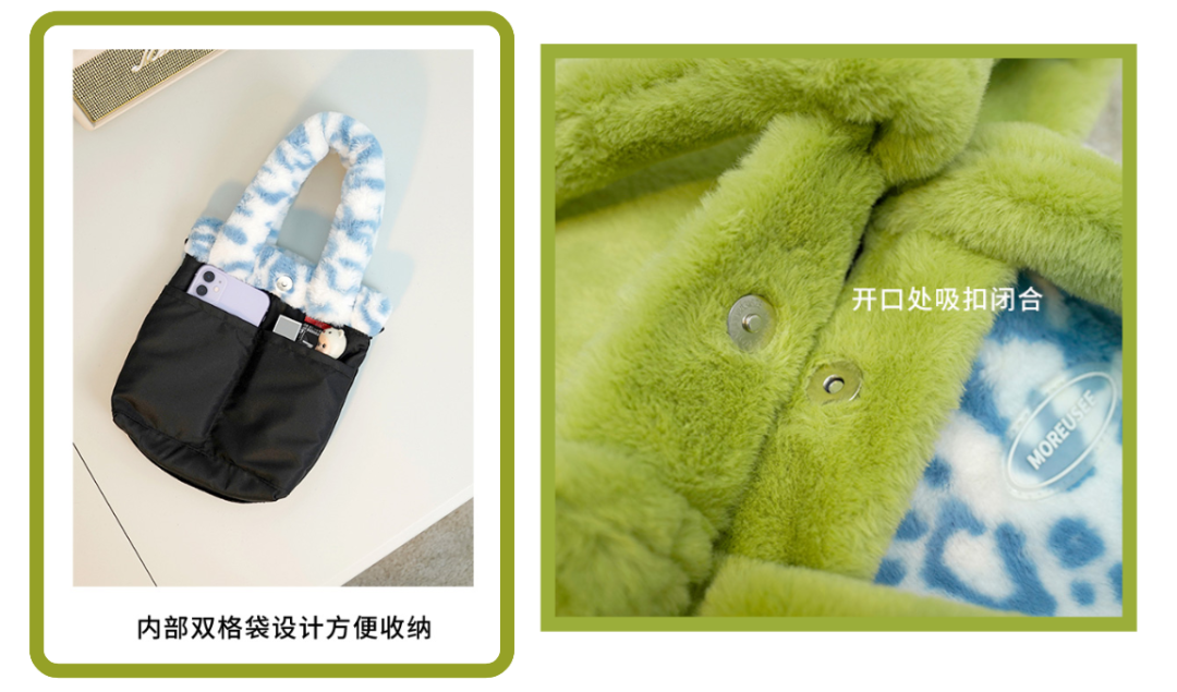 于是又去搜了下,才发现这家店!这个绿色的毛绒小包真的巨可爱!