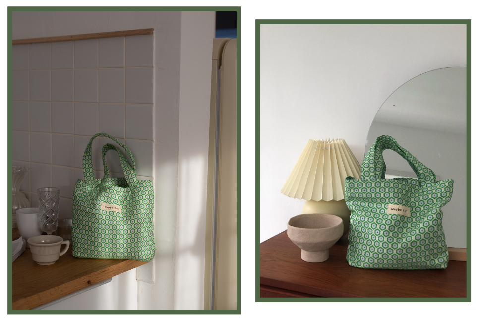我个人最喜欢的,还是这个非常春天的小手提袋,入手之后真的没觉得像便当袋,相反是真的好搭配。