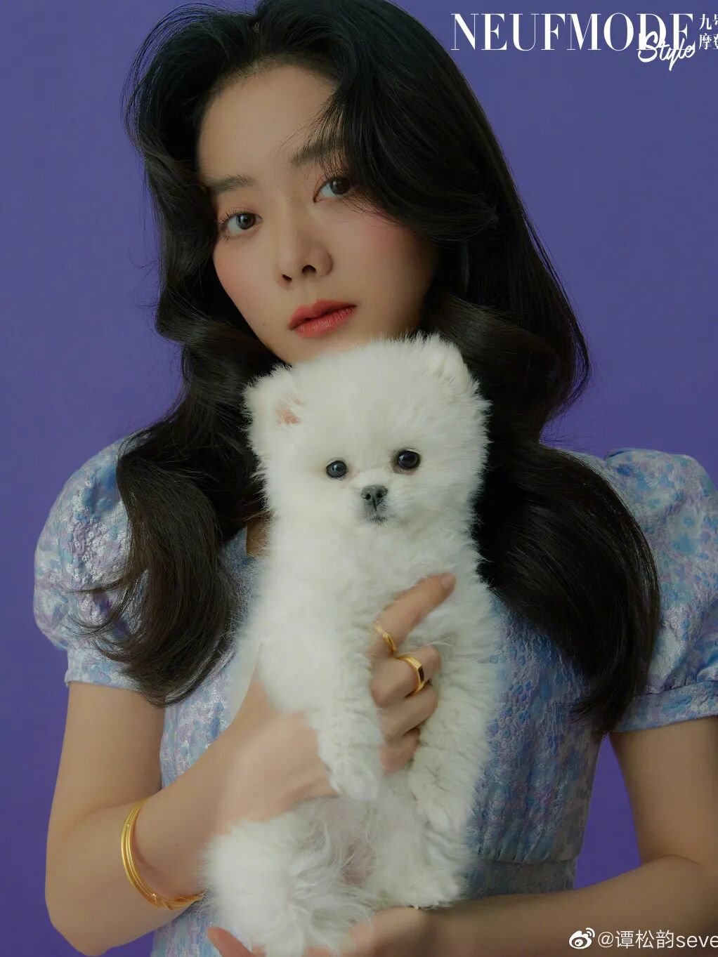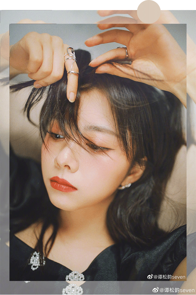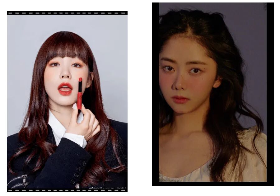 宇少的多荣就属于两颊肉肉比较多但是下巴收窄的类型,这类用刘海来减少留白反而会显得笨重圆润,八字外翻的刘海和大卷发更加适合她。