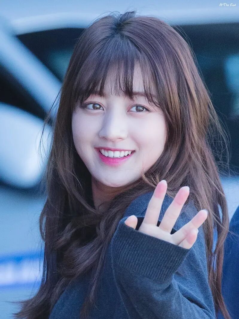 TWICE的小队也是典型的肉肉脸,她属于明艳大气的长相完全没有必要弄刘海造型,简单的微卷黑发就能把她的气质发挥出来。