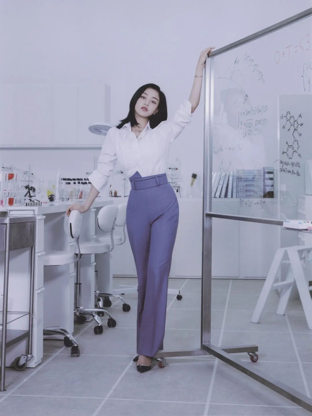 也可以选择垫肩款的西装,肩膀一宽就会显得头身比非常优秀,显脸小的目的也就达到了。