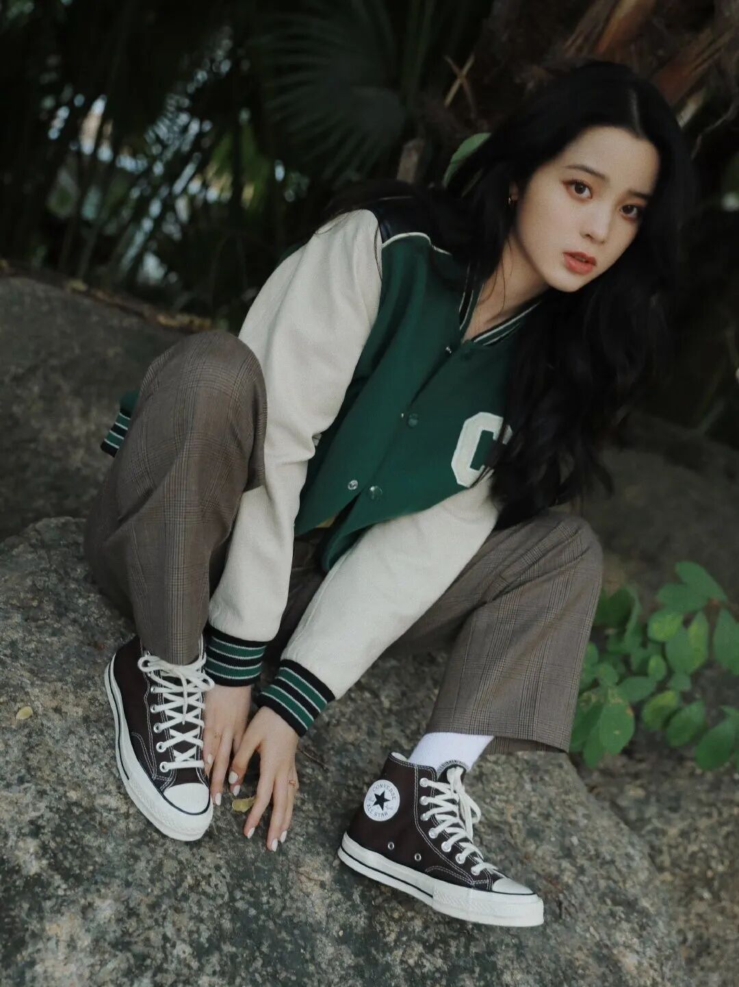 棒球服廓形利落,遮肉效果也是MAX,不仅自带酷飒风格,减龄效果也很好,上身学院气息扑面而来。