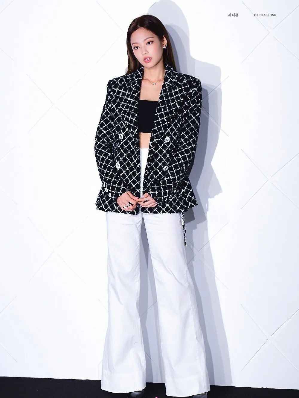 不想穿套裙的就可以看看西装裤,纯色顺滑的面料正好中和小香外套的贵气繁复感。