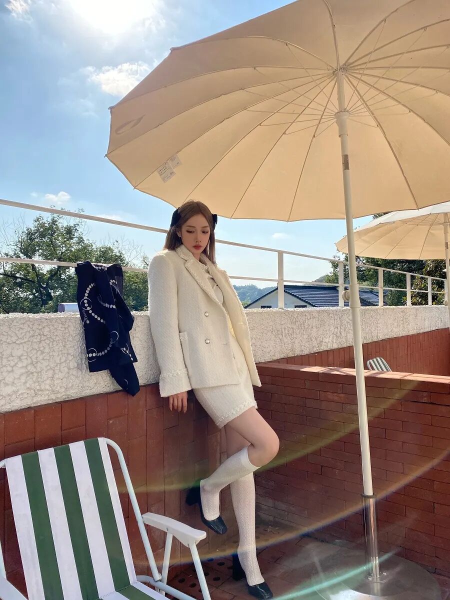 不知道怎么选下装的就可以整套穿,小香风的套裙就是不管什么时候都经典耐看且贵气十足。