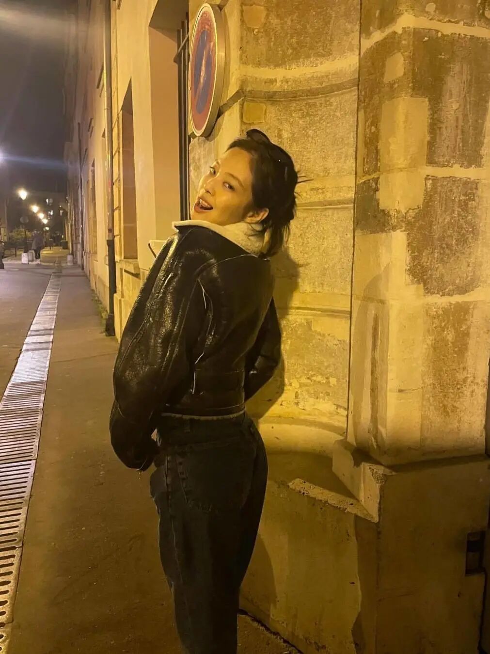 机车服大多是偏短的版型,搭配高腰牛仔裤来打造高腰线,再配上一双长靴,即使是秋冬也能轻松穿出完美身材。