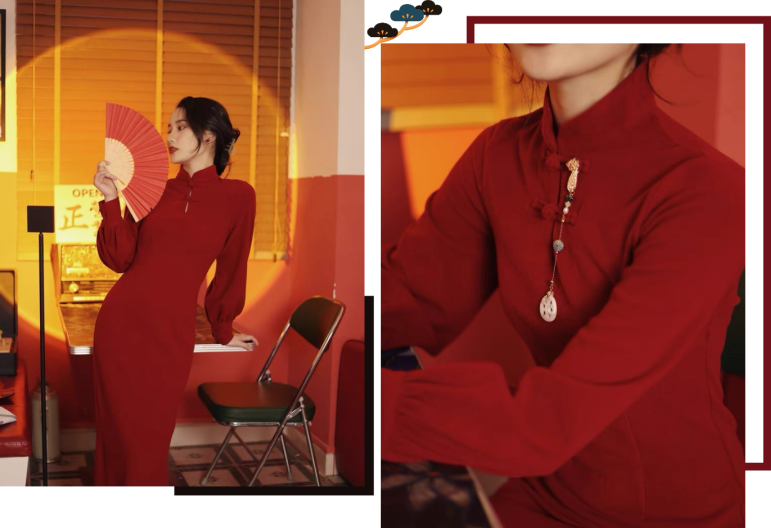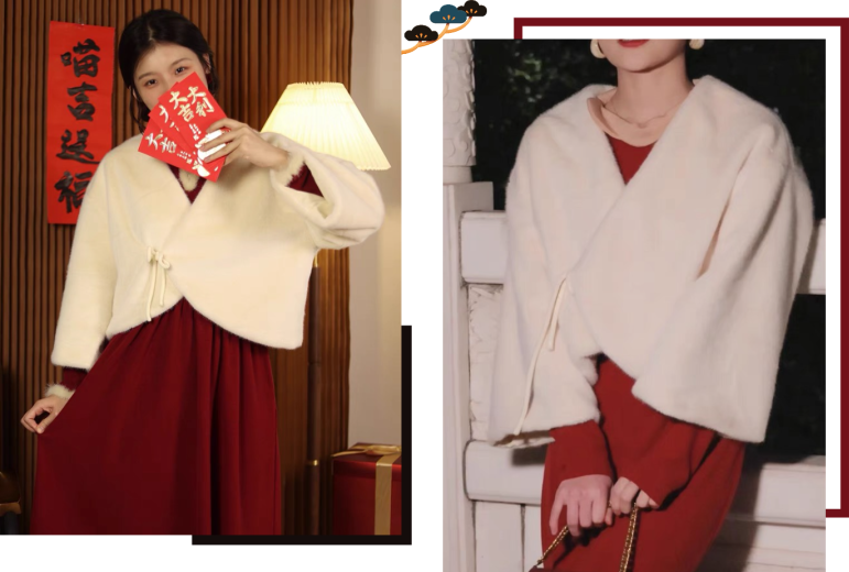 既然是节假日,穿衣可以不那么传统,完全可以试着穿穿不一样的感觉。比如旗袍打上白色的小坎肩或毛茸茸的白色短款外套,都能令大家眼前一亮~