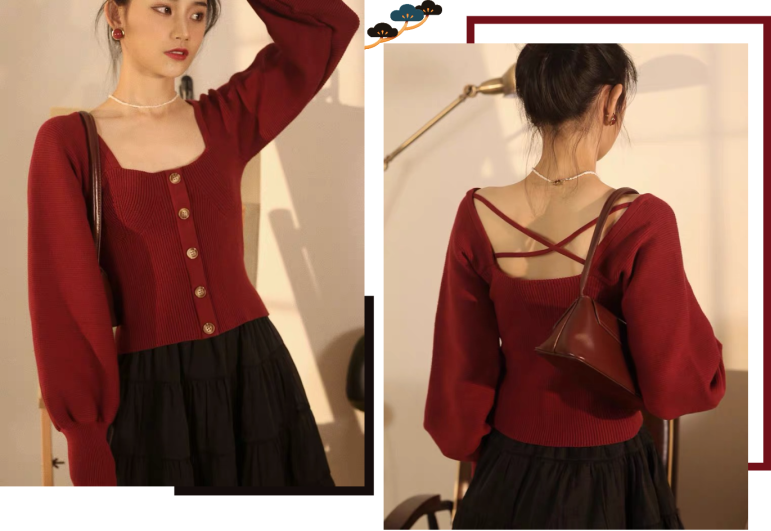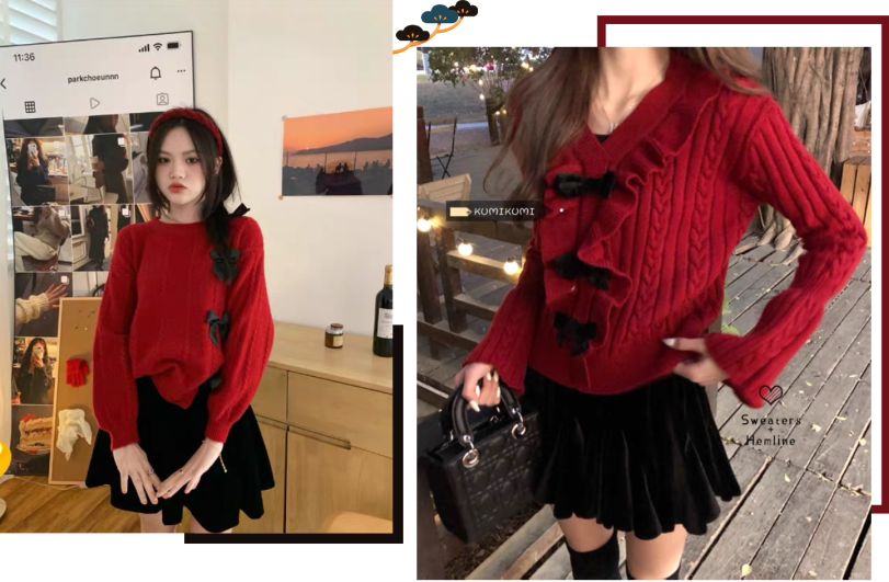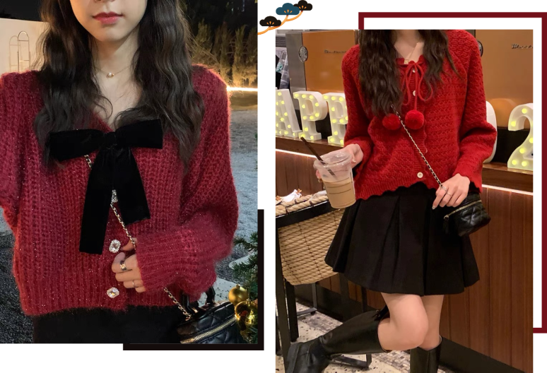 还有新年说什么都不能少的氛围感红色毛衣,细看还带着些bulinbulin,精致到连纽扣都不能被遗忘!在灯火摇曳之下简直美呆!