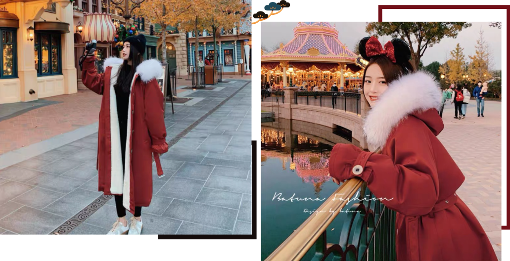 就算是看似裹成熊的长款棉服,穿上拍照都是绝美的!不喜欢敞开穿还有腰带用作修饰,考虑地太周到了!
