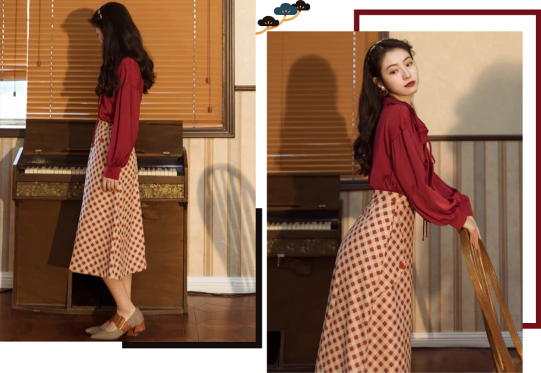 因为是中国新年就更少不了中国风的套装,直筒开叉中长裙直接让我get到了民国时期的优雅知性。