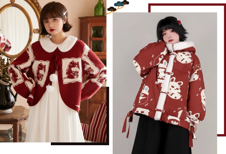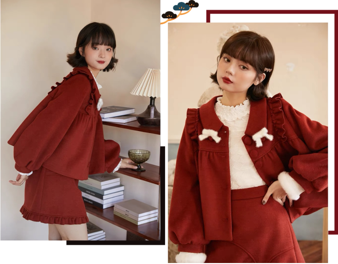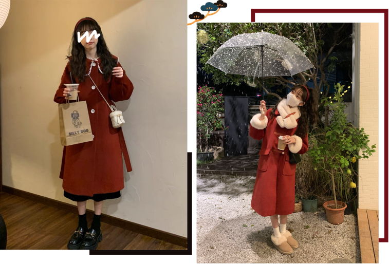 关键是,这种红调有一股高级的气息,穿在身上就像是自带美白滤镜一般!但服装融入的可爱元素中和了这种高级感,反而衬托出了整体的精致!