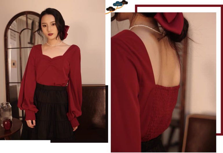 内搭的的衣服也很重要哦!方领口对脖颈和锁骨起到很好的修饰作用,而泡泡袖更是凸显法式复古的优雅,不会紧贴手臂,对肉肉星人非常友好!