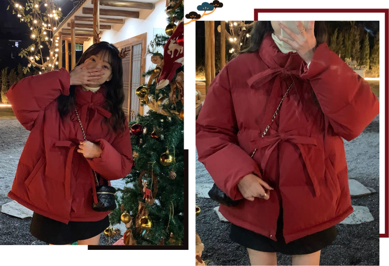 冬天最担心的就是短款棉服会显胖,但是这种蓬蓬的感觉真的很显幼态!尤其是两个可系蝴蝶结的点缀,谁看了不得夸你一句甜妹!