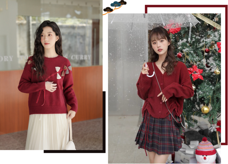 成熟点的风格当然也有啦,毕竟食物链的顶端是姐姐诶,新年的红装战袍肯定不能输了气场!