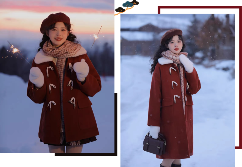 而甜美风的大衣,尤其是显白显嫩的砖红色还搭配白色的毛茸茸,遮肉显瘦还不显臃肿!我敢说,再过几年大衣都不会过时!