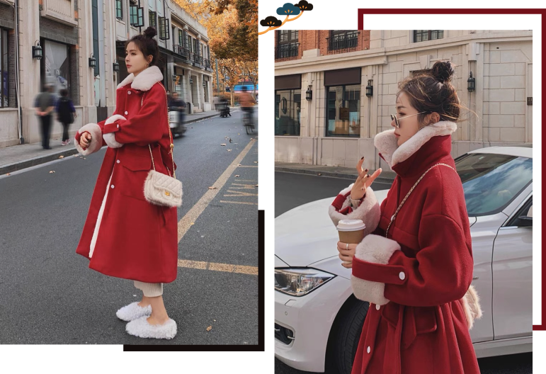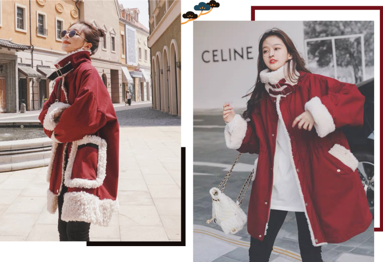 新年红装怎么少的了又酷又知性的羊羔毛立领机车服呢?本身就带着一丝帅气的版型,加上红色就显得更飒了!