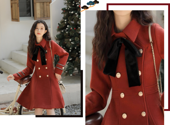 再看看这款赫本风十足的毛呢连衣裙,既不张扬又超显气质!金属双排扣和翻领设计集结了我所有的心头好,真的是巨耐看!