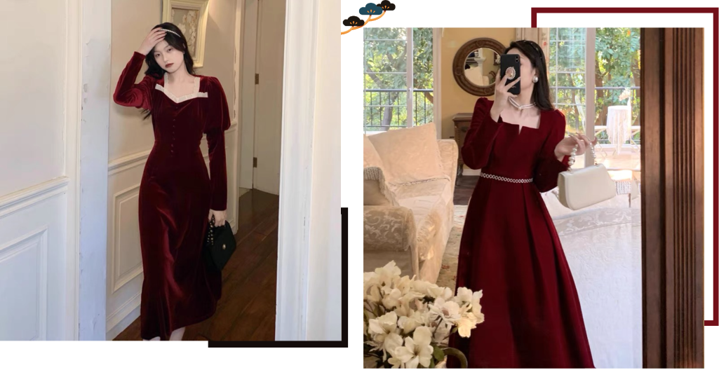 还有各种绝美的法式宫廷风长裙,虽然和新年的风格有些反差,但还是特别适合拍美美的照片哒!