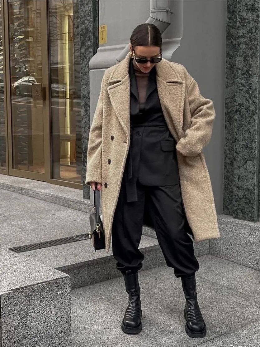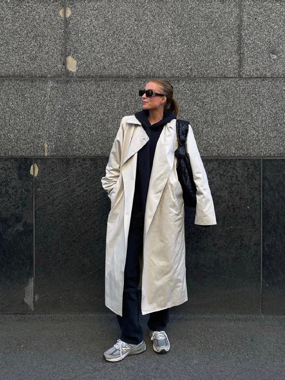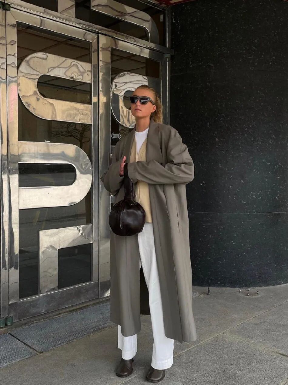 一套all black运动set+白色大衣,或者白T+白裤子外穿一件灰色大衣,还可以叠穿一件咖色针织衫增加层次感。不必多说,大地色系就是永远的经典。