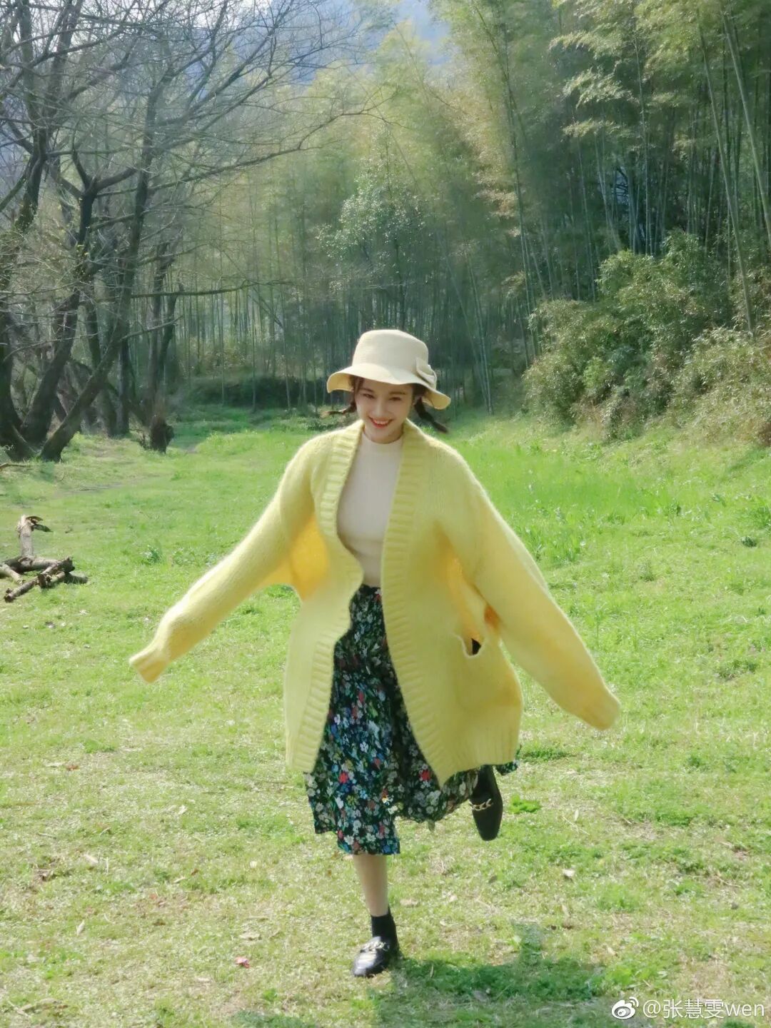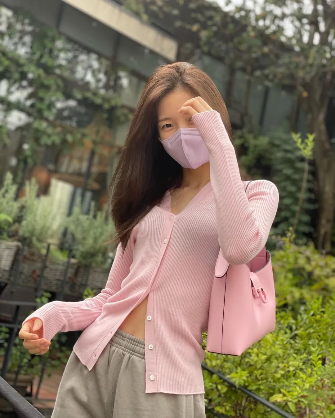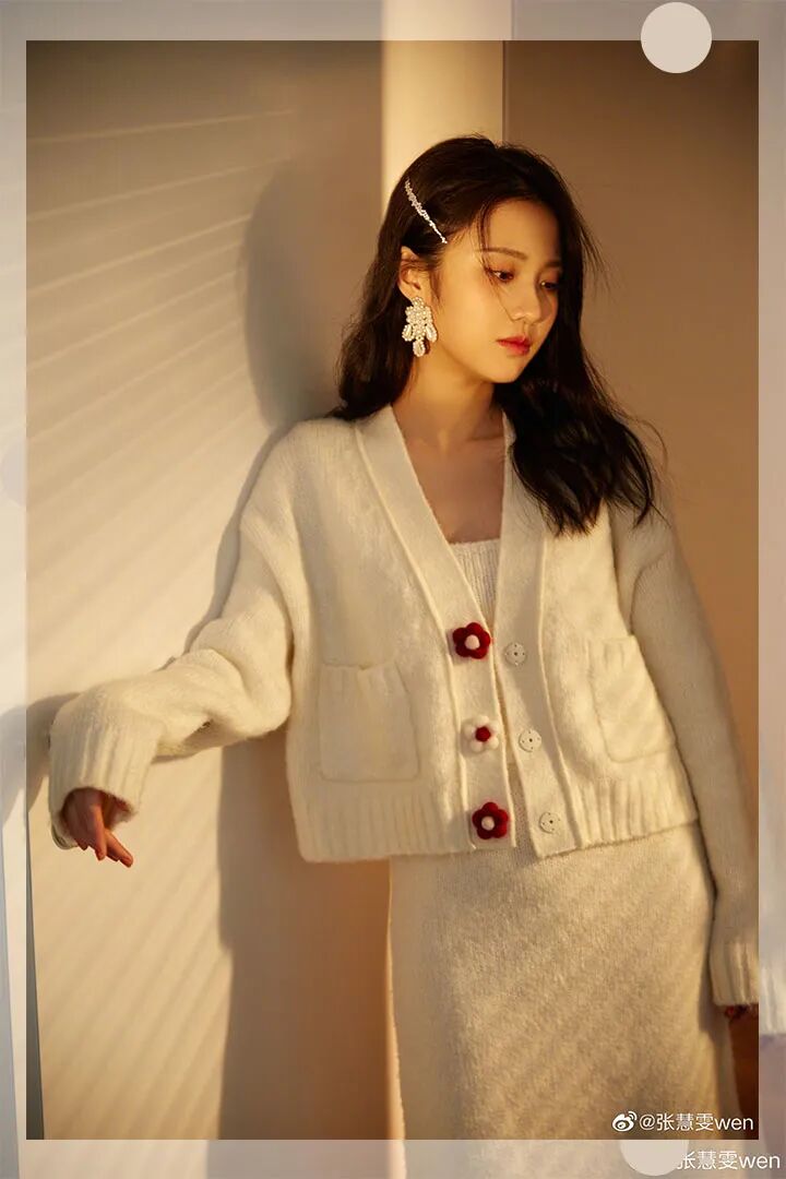 一身all white针织set,在开衫上点缀几朵小红花让look更有色彩,温柔简约有气质。