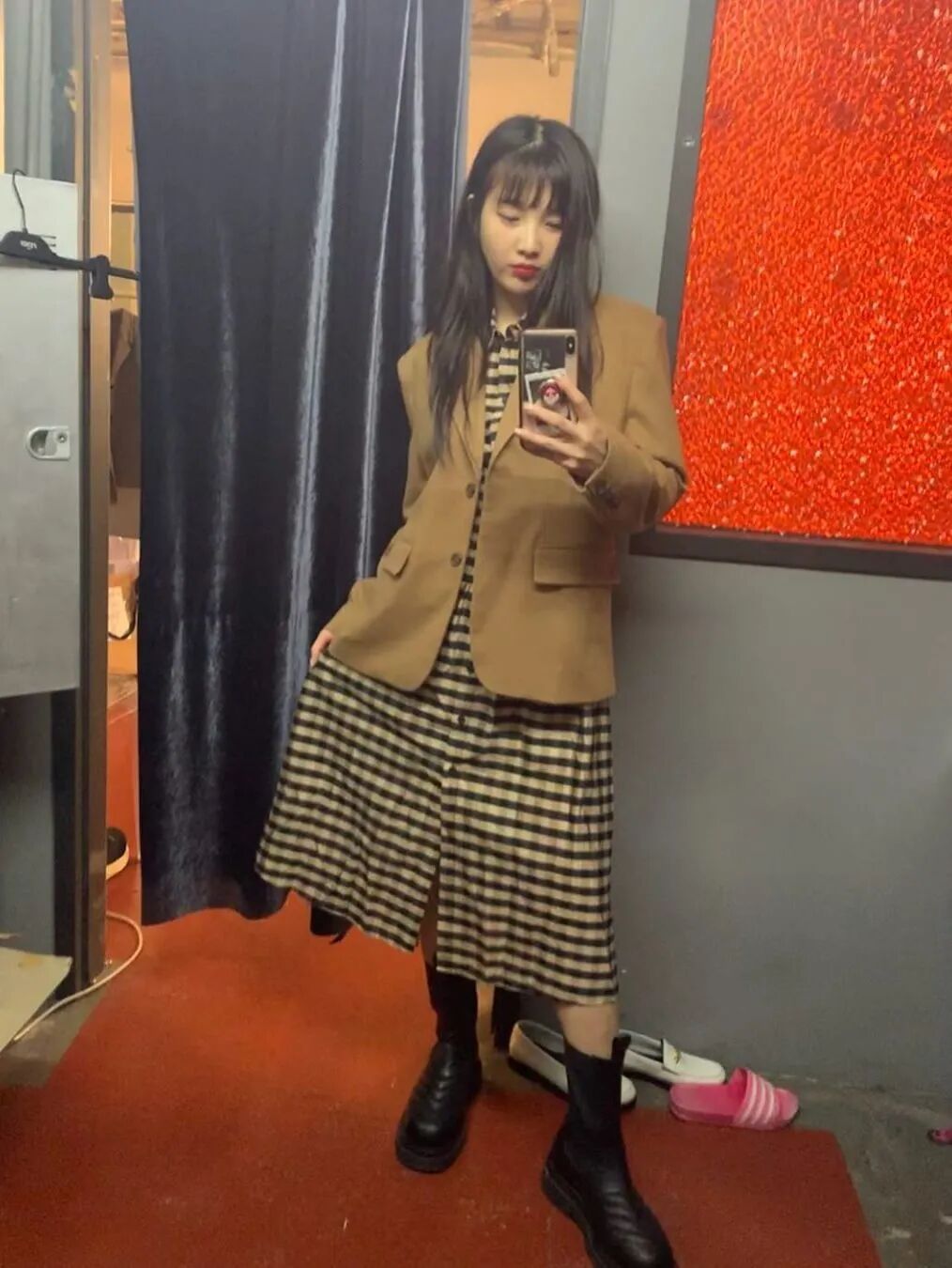 明亮黄和利落的剪裁、硬挺的面料相结合也会有意想不到的效果,像肯豆这样一整套的西装搭配,潇洒干练👇