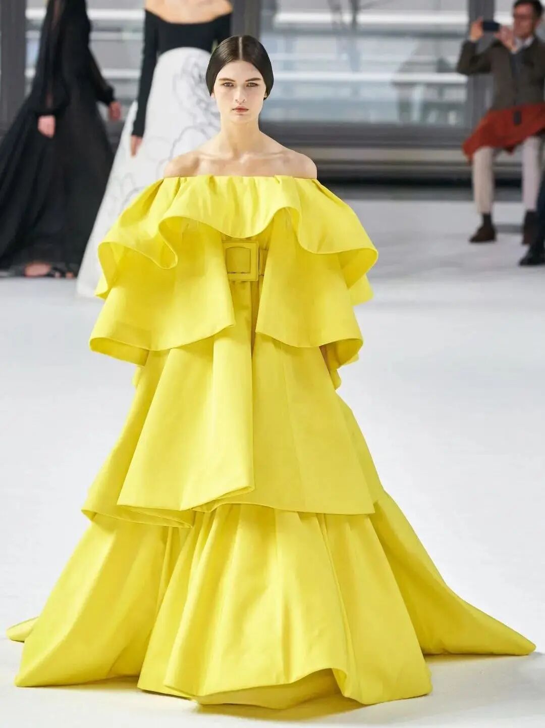 这样俏皮活泼的颜色用在初春让人有眼前一亮的感觉,一出现就能吸引住你的目光,所以用在秀场上也十分合适。
