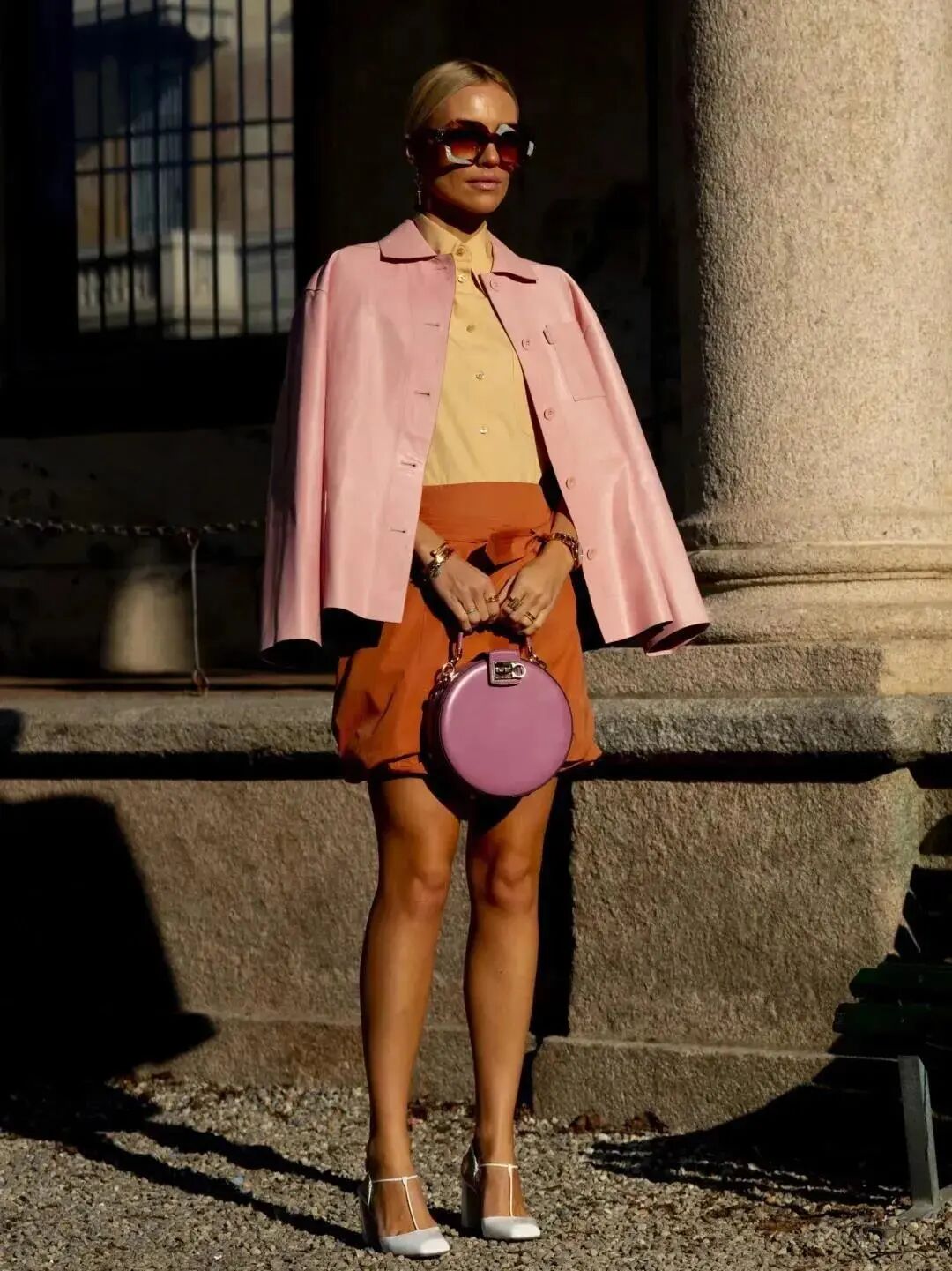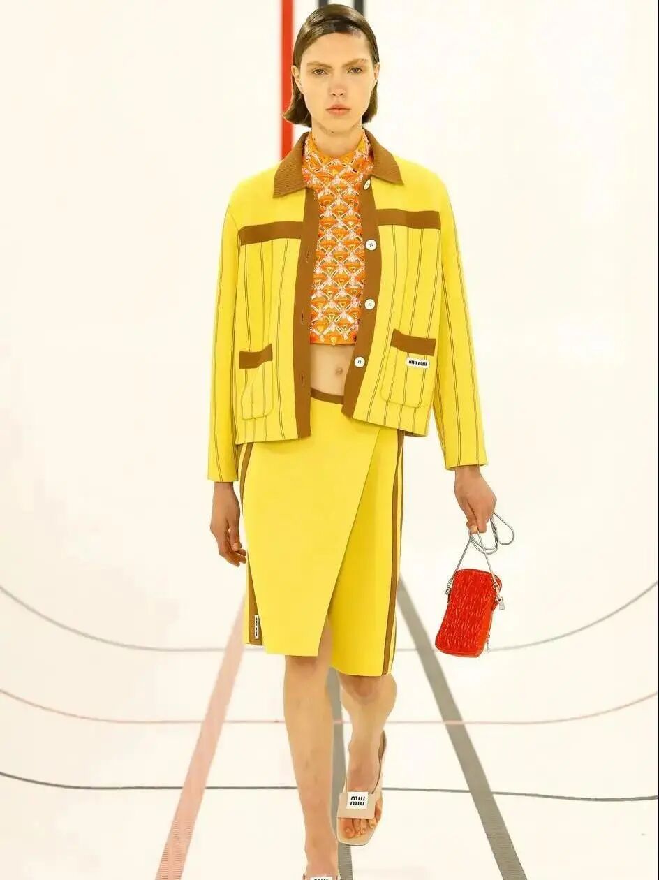 如果担心hold不住这种高饱和度的亮色,建议离脸远一点把它放在下身来穿就会好驾驭的多,高明度的黄和低明度的粉or蓝都能相得益彰。