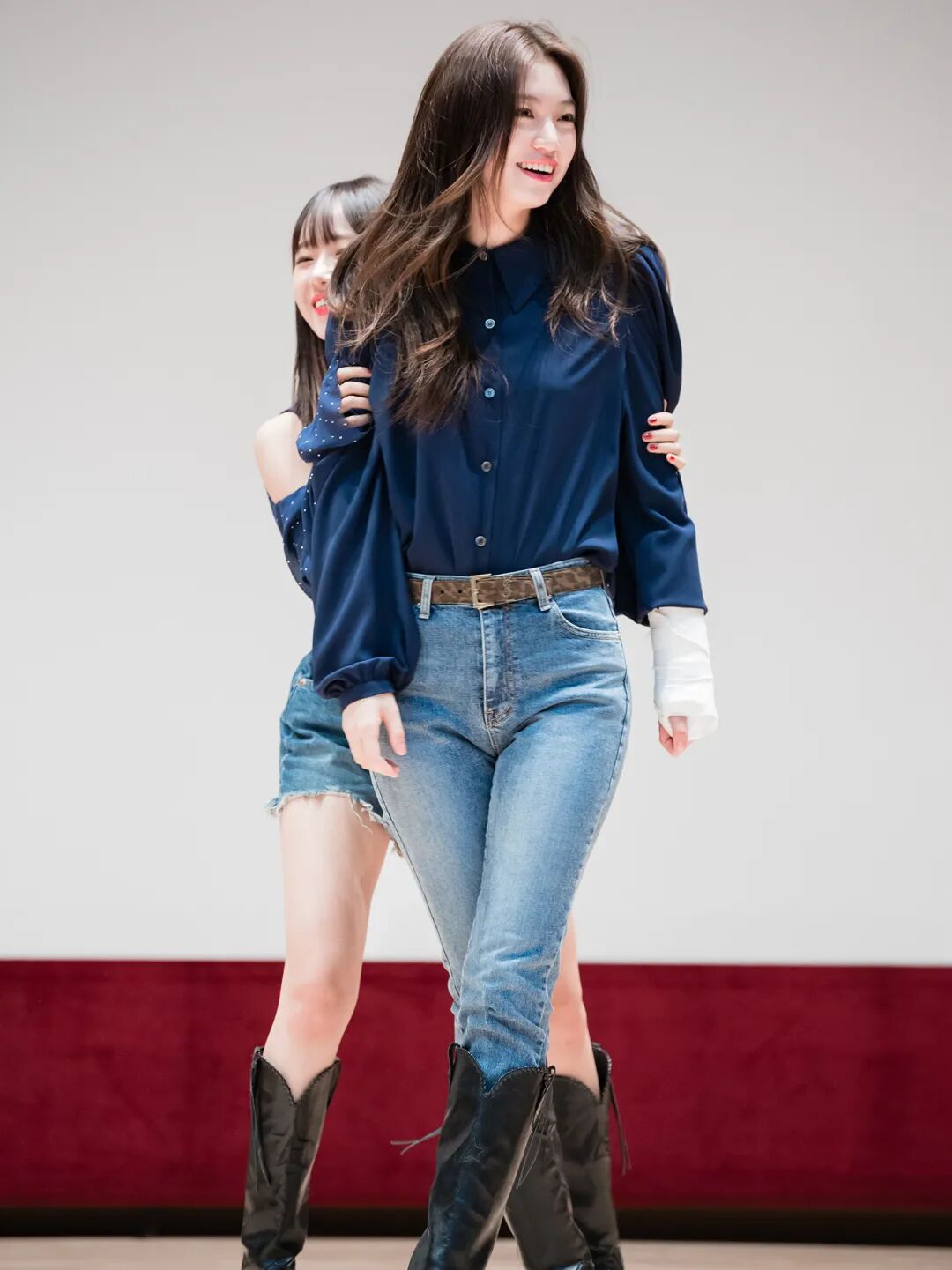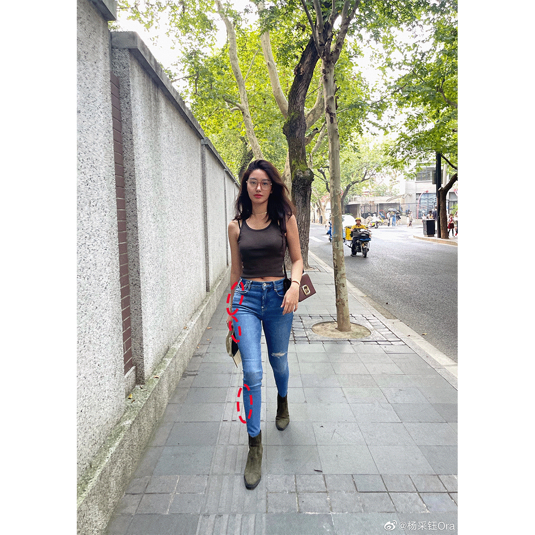 高腰牛仔裤则对腹部的包容性更大一些,硬挺的的面料能很好地藏肉显瘦,上衣不管是塞进去还是放下来都🉑