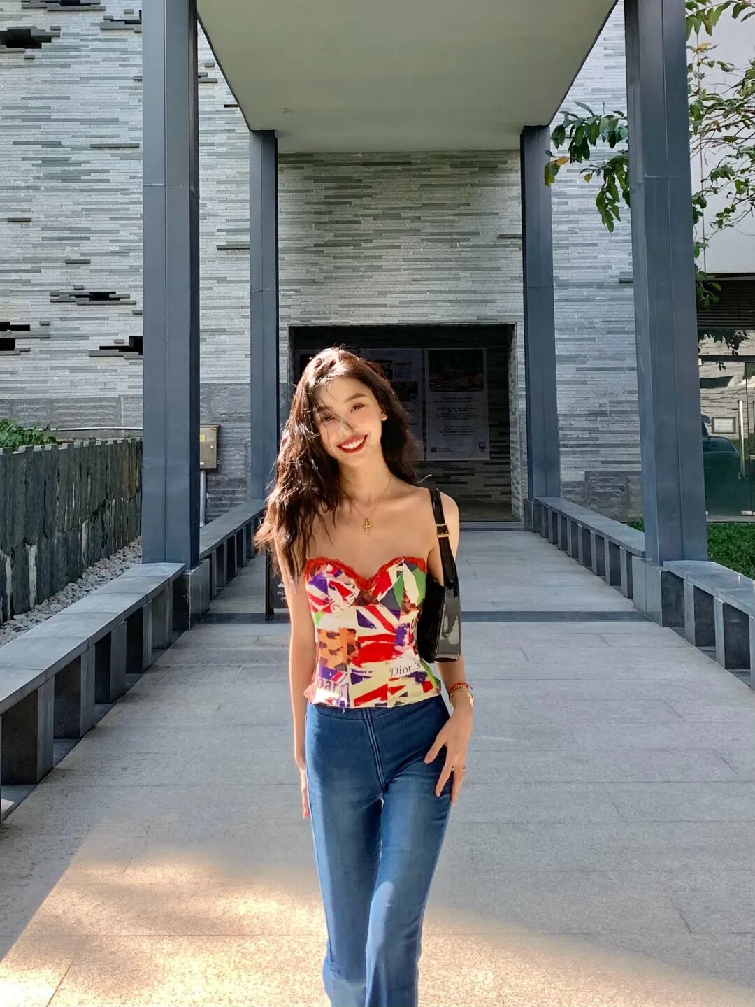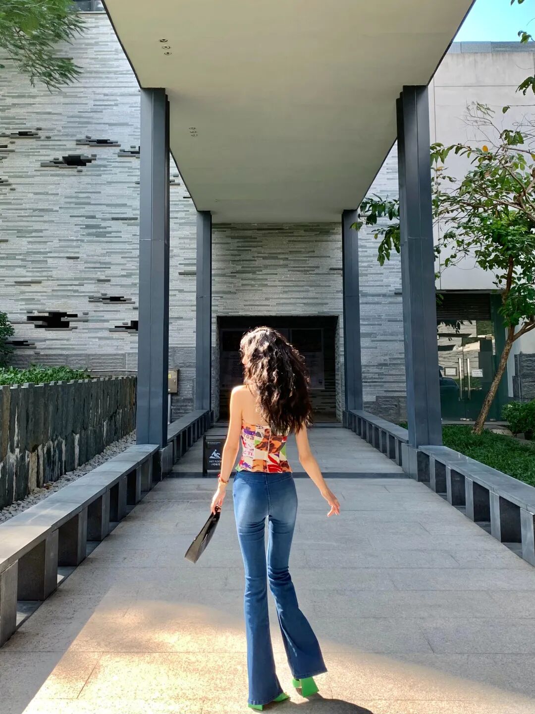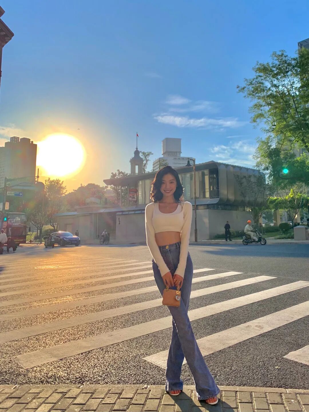 上身搭一件修身crop短上衣,完美勾勒身材曲线,纯欲风真YYDS!