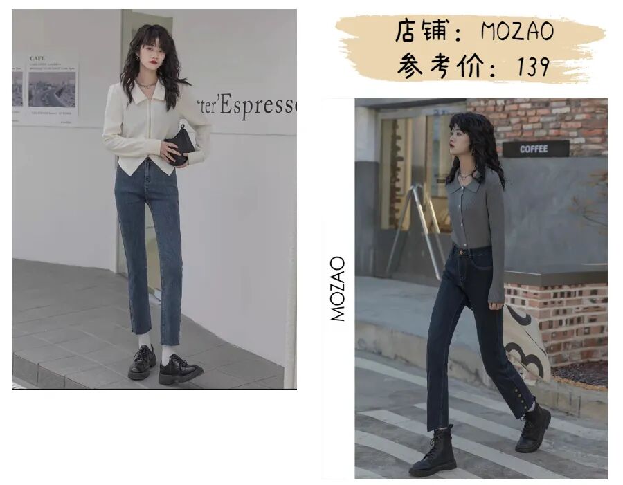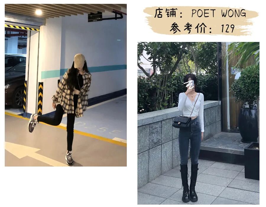 作为长裤来说修身牛仔裤是最显身材的,硬挺带有弹性的牛仔面料能把腿部线条勾勒的更加好看,女性魅力展露无疑~