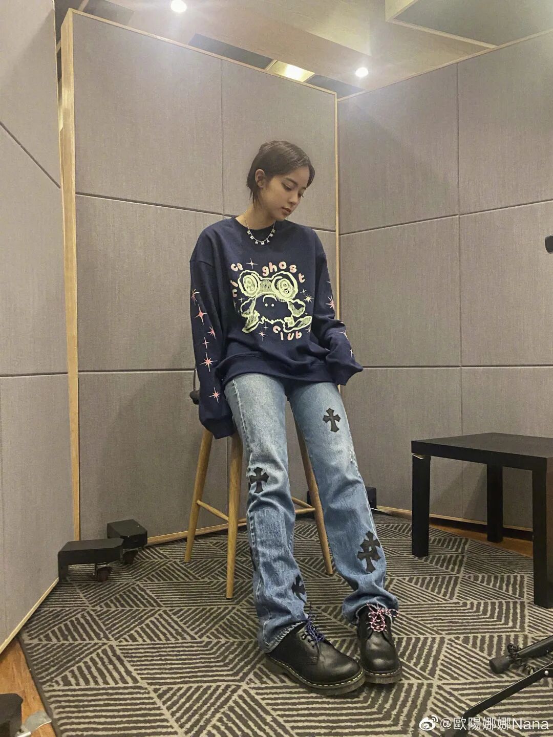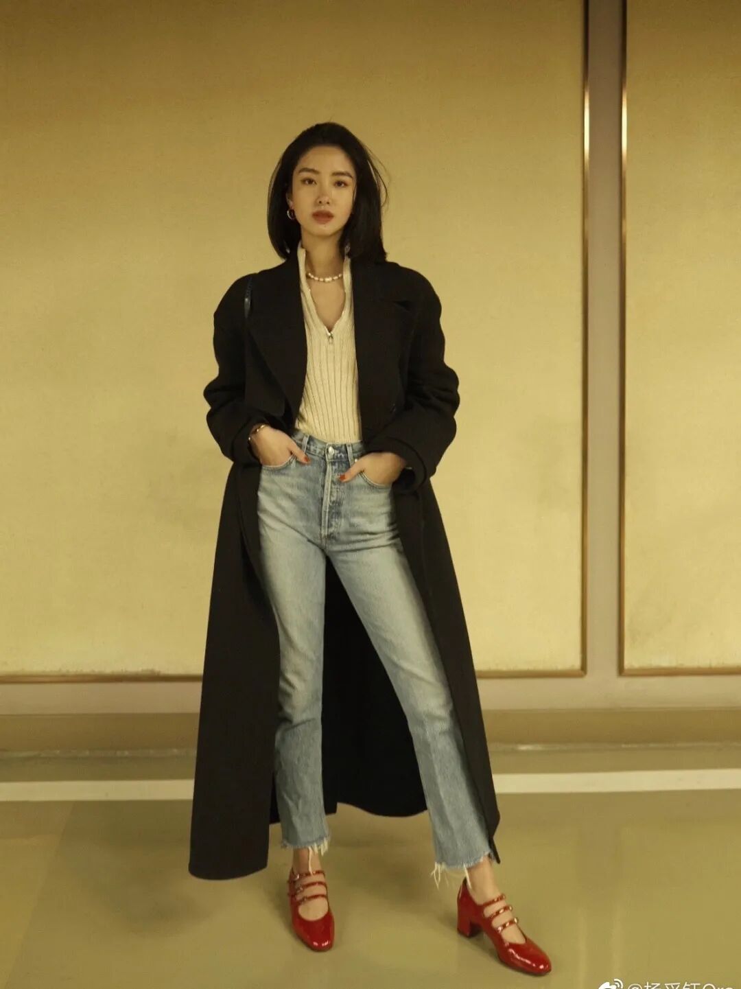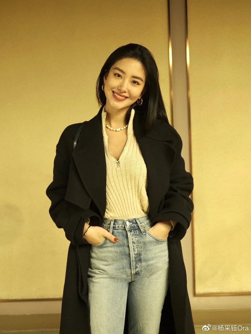 阔腿牛仔裤和周雨彤的穿搭风格太配了,难怪周姐经常上身阔腿裤了,帅气硬朗又不失女人味。