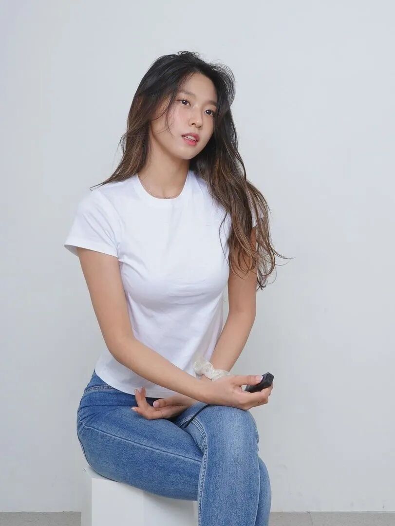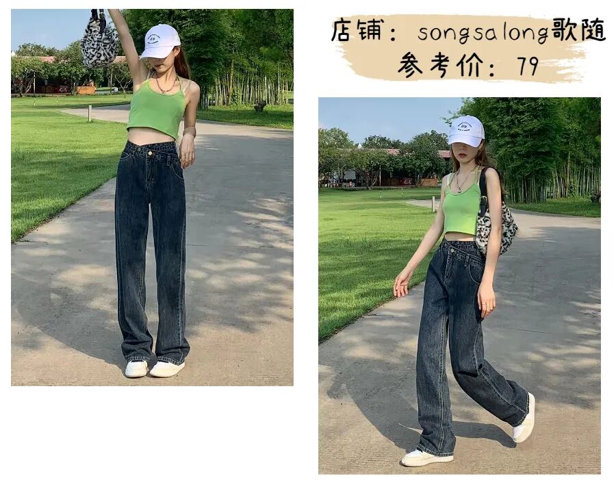低腰款对身材的考验比较高,不过腰线好看的宝子穿它是超加分的,上身配一件短白T干净清爽。