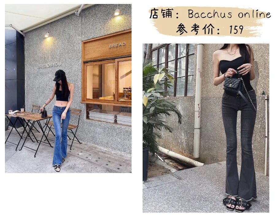 虽说马蹄裤修饰小腿但是上半部分还是非常修身紧贴大腿的,因此如果大腿粗or假胯宽的姐妹穿着也会不太协调。