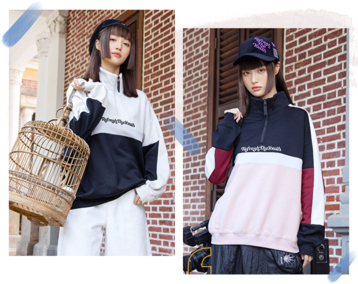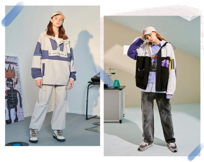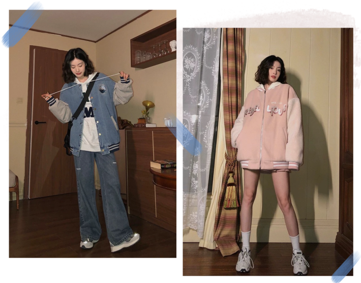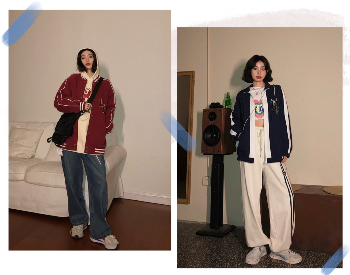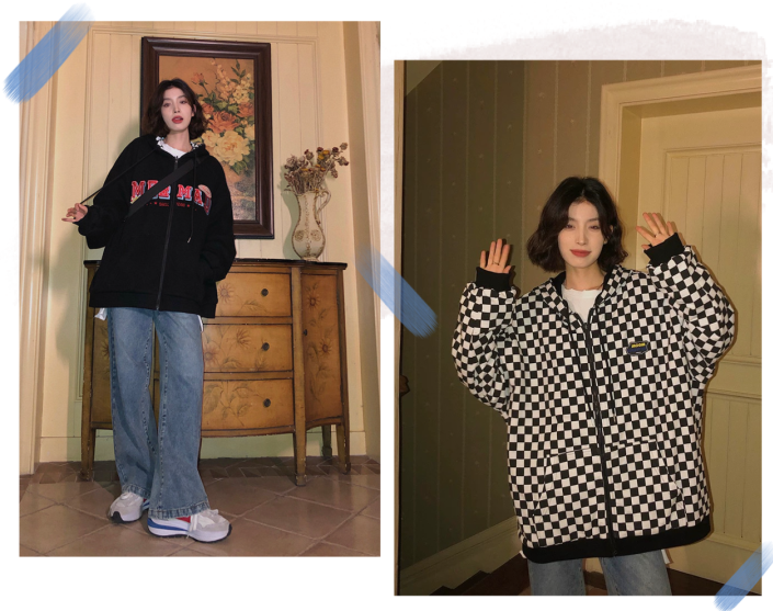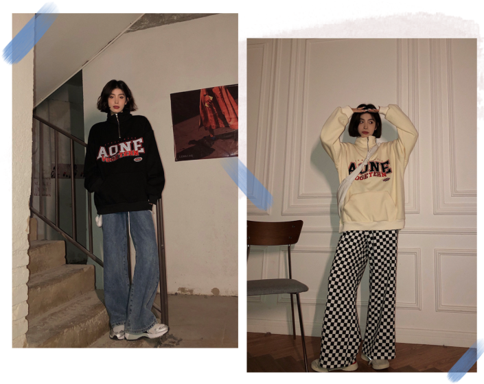 而且不得不说,立领卫衣和牛仔裤阔腿裤还有那么些复古的调调呢!
