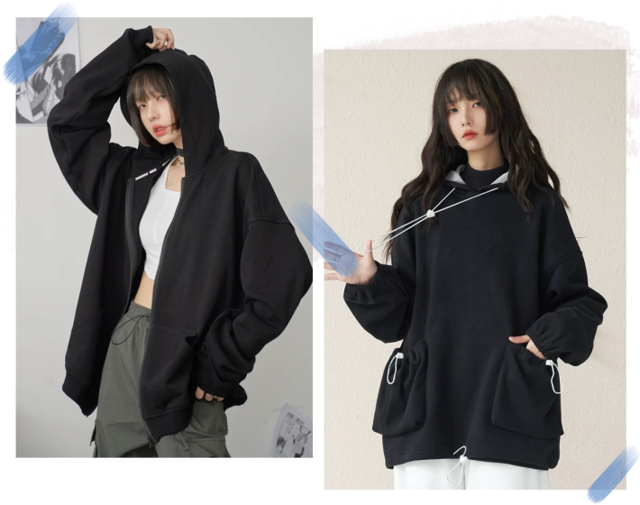 除了圆领和连帽卫衣,近两年我还更喜欢立领卫衣,带着一点点酷酷的感觉。而且拉链拉下来还能变成小V领,炒鸡显瘦!