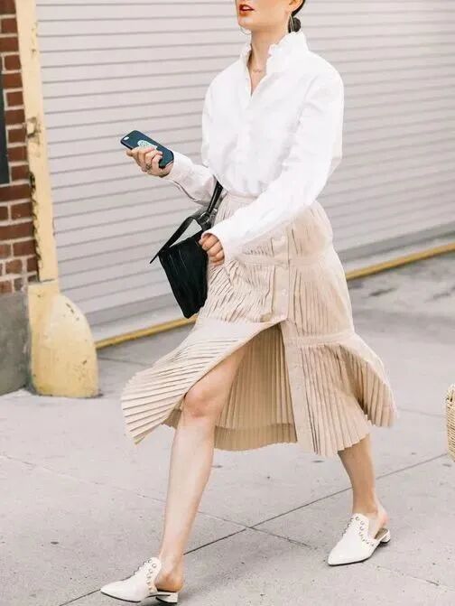 不过最得各大时博喜爱的还得是平跟穆勒鞋了吧!平跟设计在女人味之外又多了一份慵懒随性,关键是很好走路啊!