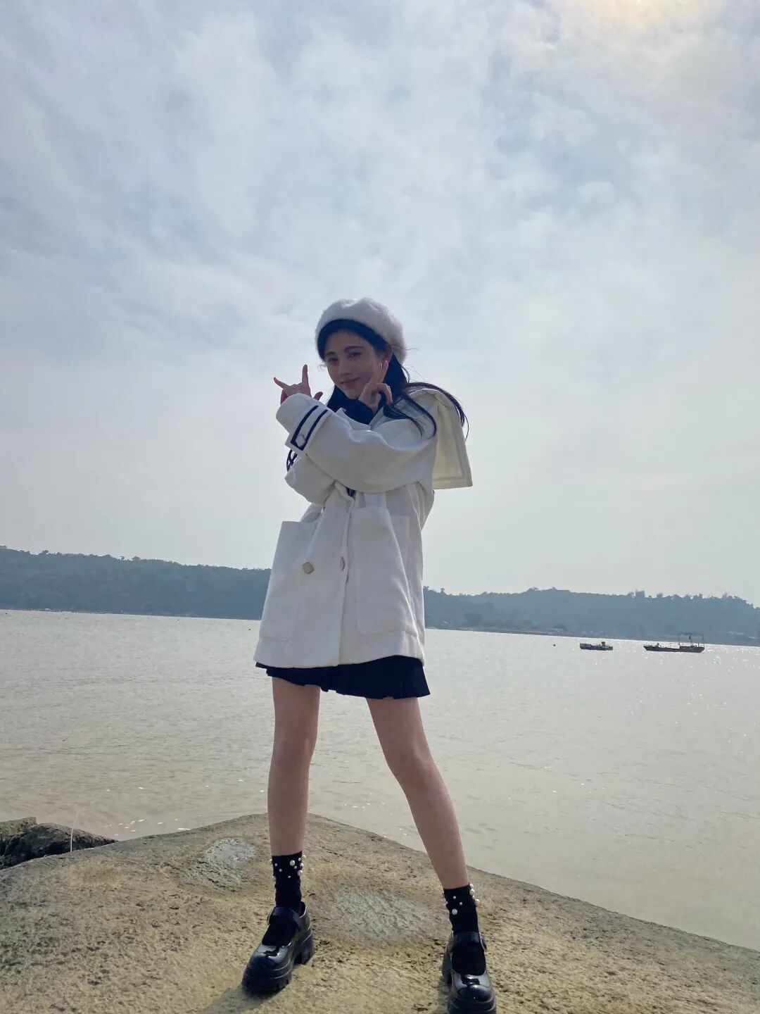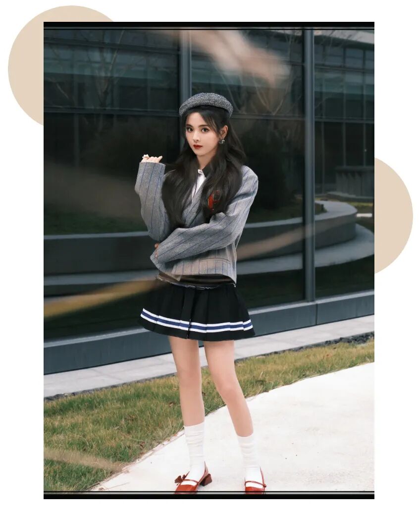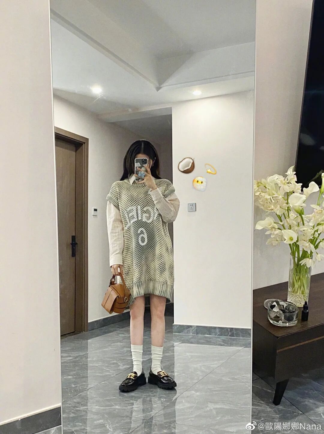 超越妹妹演绎的乐福鞋更加娇俏可爱,配上衬衫、高马尾青春逼人,和校花太贴脸了。