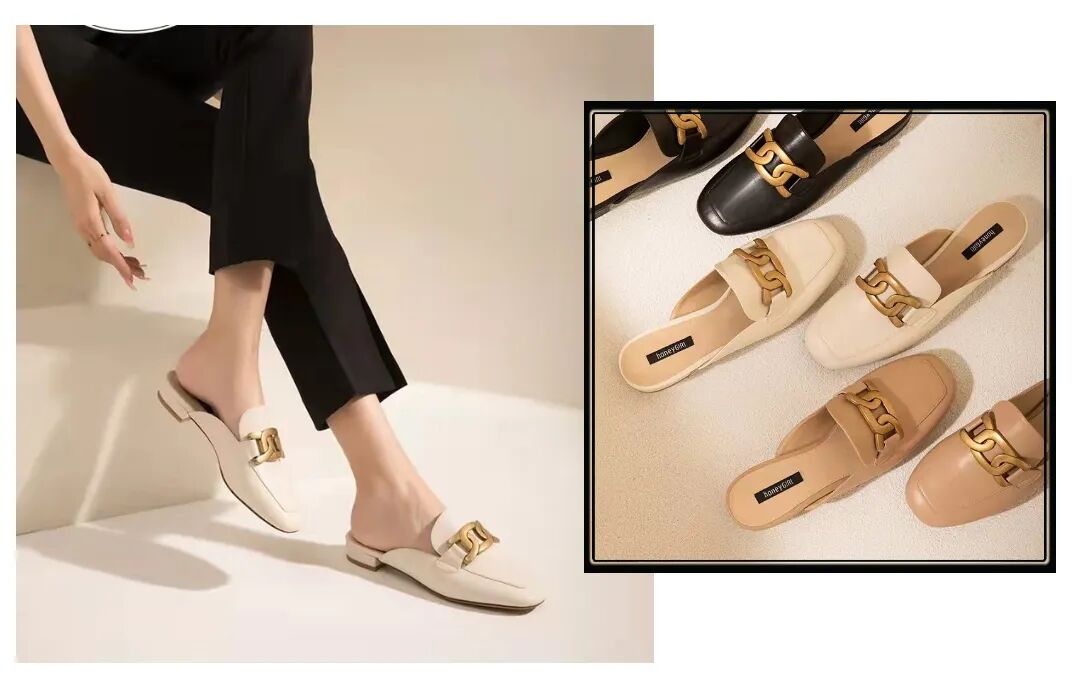 乐福鞋相对来说要正式一些,露出脚面的部分不多,而且基本上都是平跟款式,可盐可甜很适合通勤穿!
