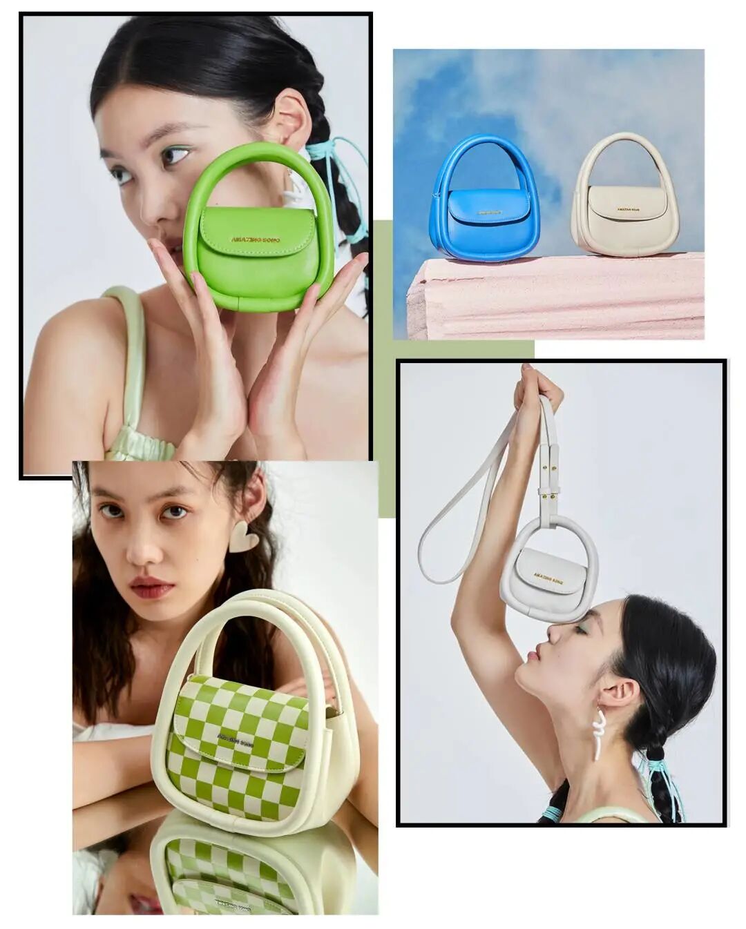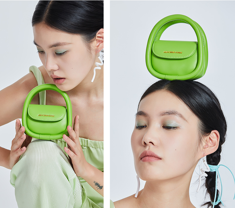 迷你耳机款也是超级可爱,牛油果绿的迷你款尤其适合作为夏日穿搭的小配饰。