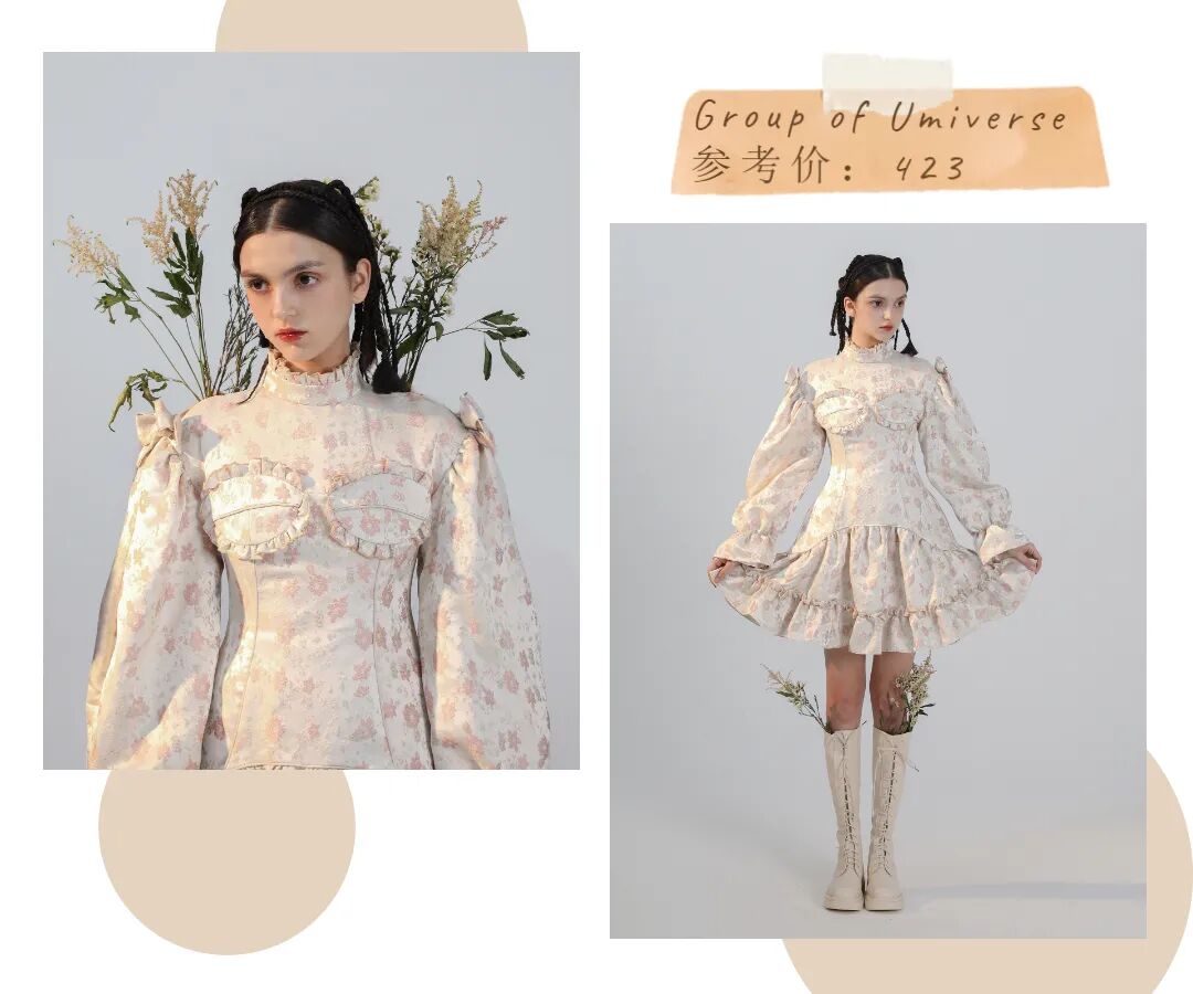 半高领、泡泡袖和蓬蓬裙的组合碰撞出复古浪漫的氛围,提花面料上的粉色花朵娇俏可爱,看到她就觉得是春天的花在悄悄绽放~