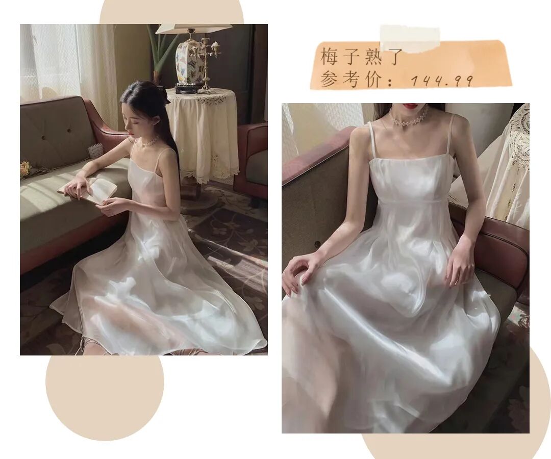这件我会比较喜欢她上半身的设计很像最近流行的吊带款式,把腰身修饰的恰到好处,裙摆是自然垂坠很有质感~