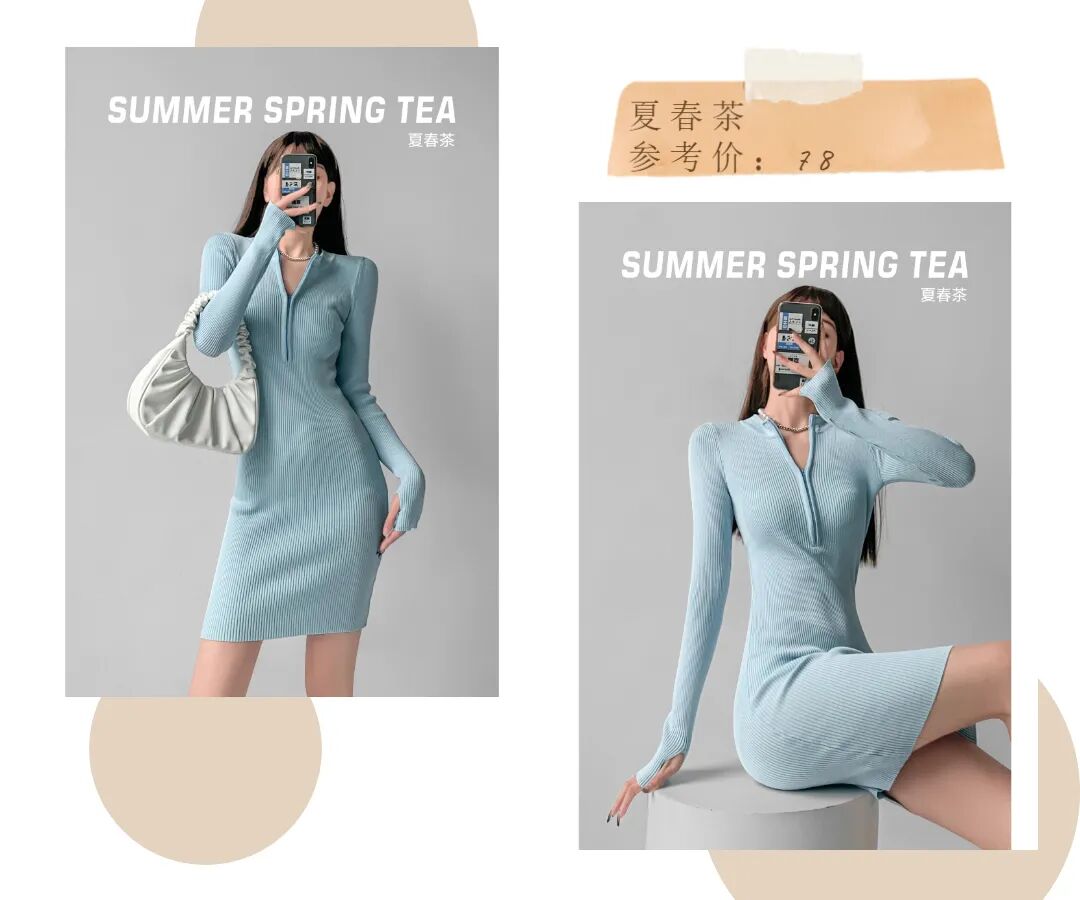 半高领拉链款中和了针织裙自带的性感多了点中性运动的氛围,今年春天值得入一件~