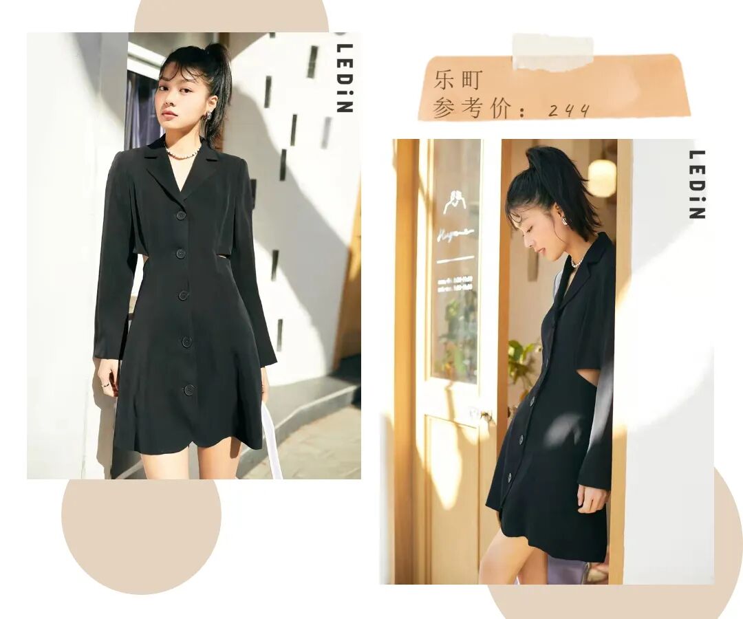 乐町这件也有异曲同工之妙不过少了蝴蝶结的设计就更加正式了,日常通勤穿也不会有问题。