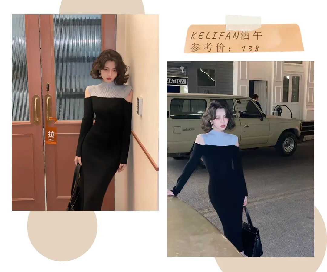 肩部拼接+露肩设计完全踩在了我的审美点上,不得不说酒午真的很会展现女性美~
