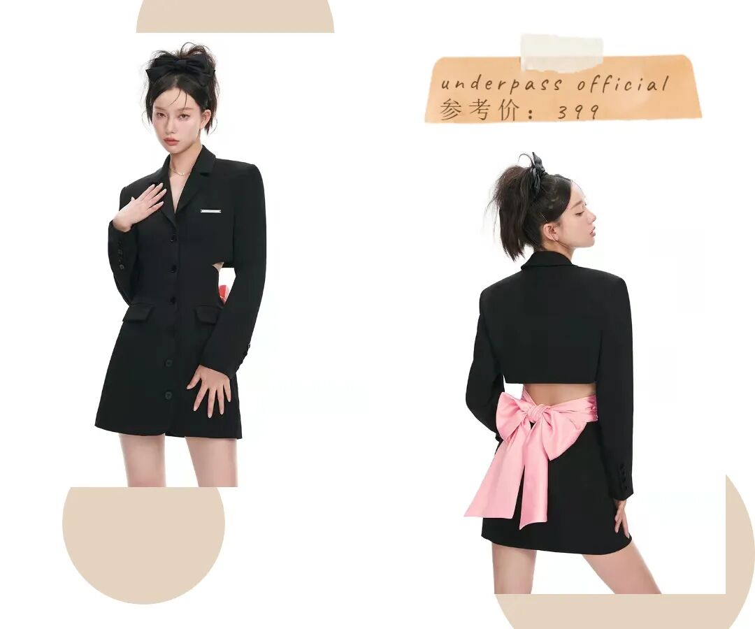 underpass这件我已经看上好久了,后背挖空的小❤️机给原本板正严肃的西装注入一丝活力,后背的粉色蝴蝶结的加入让整体设计又甜又辣,真的没办法不爱!
