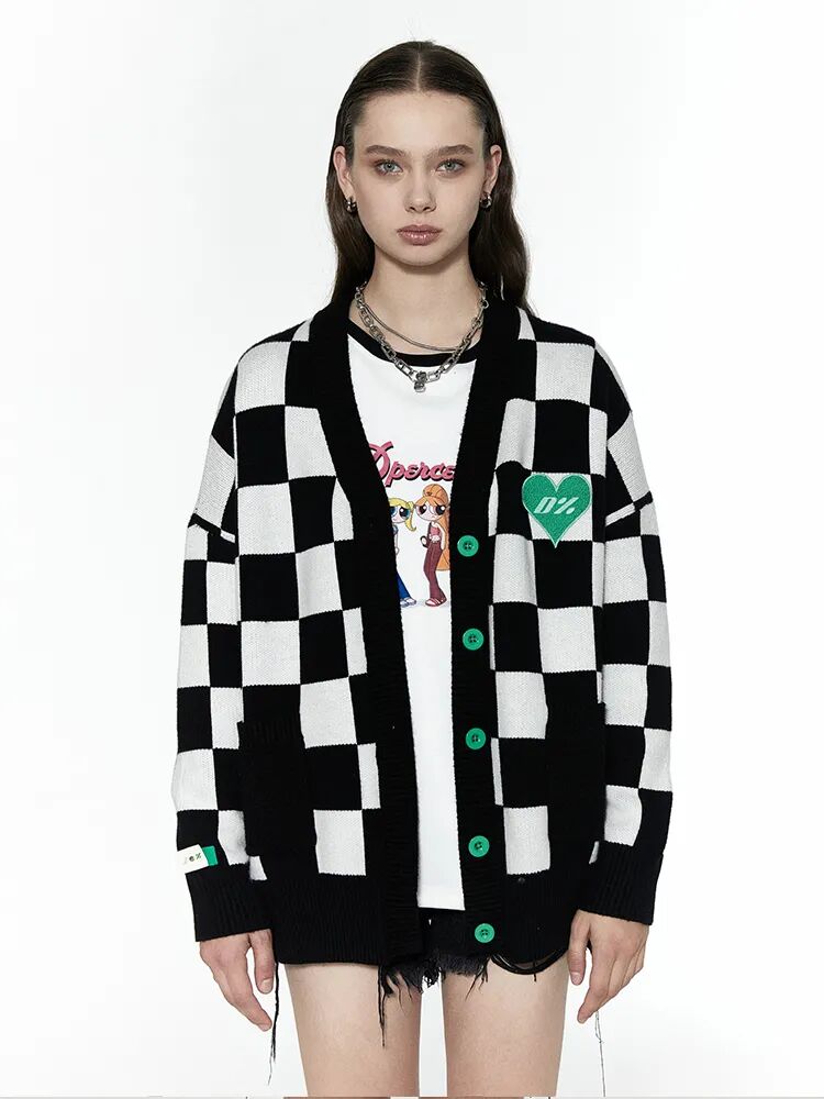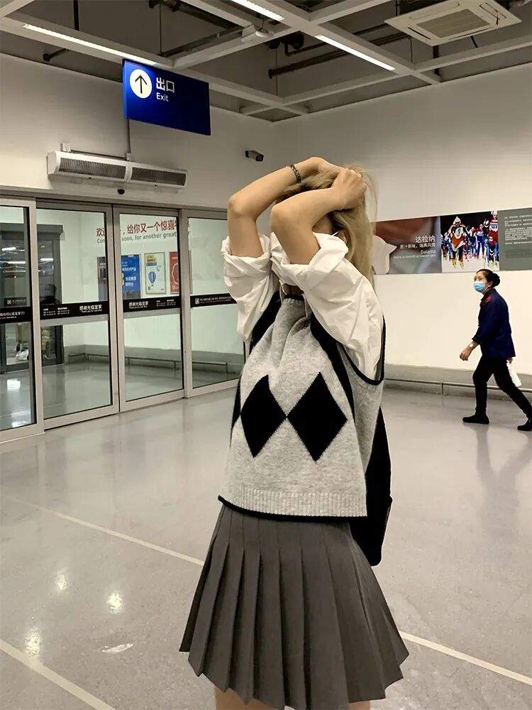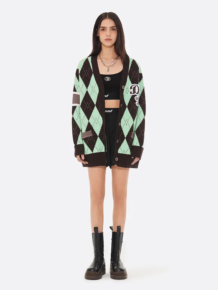 菱格纹的针织开衫就很美式校园,可以拿来搭配小短裙。