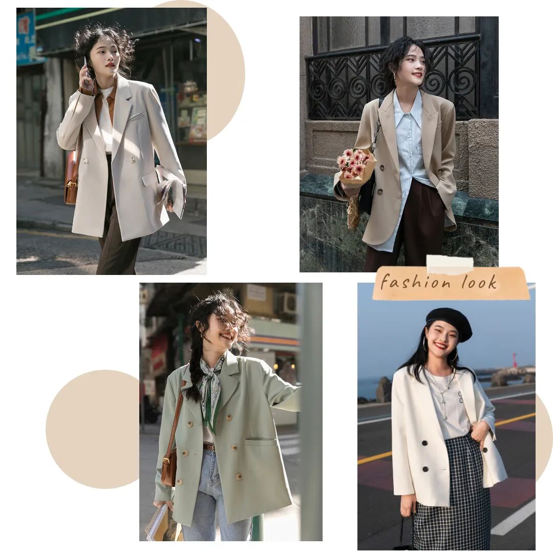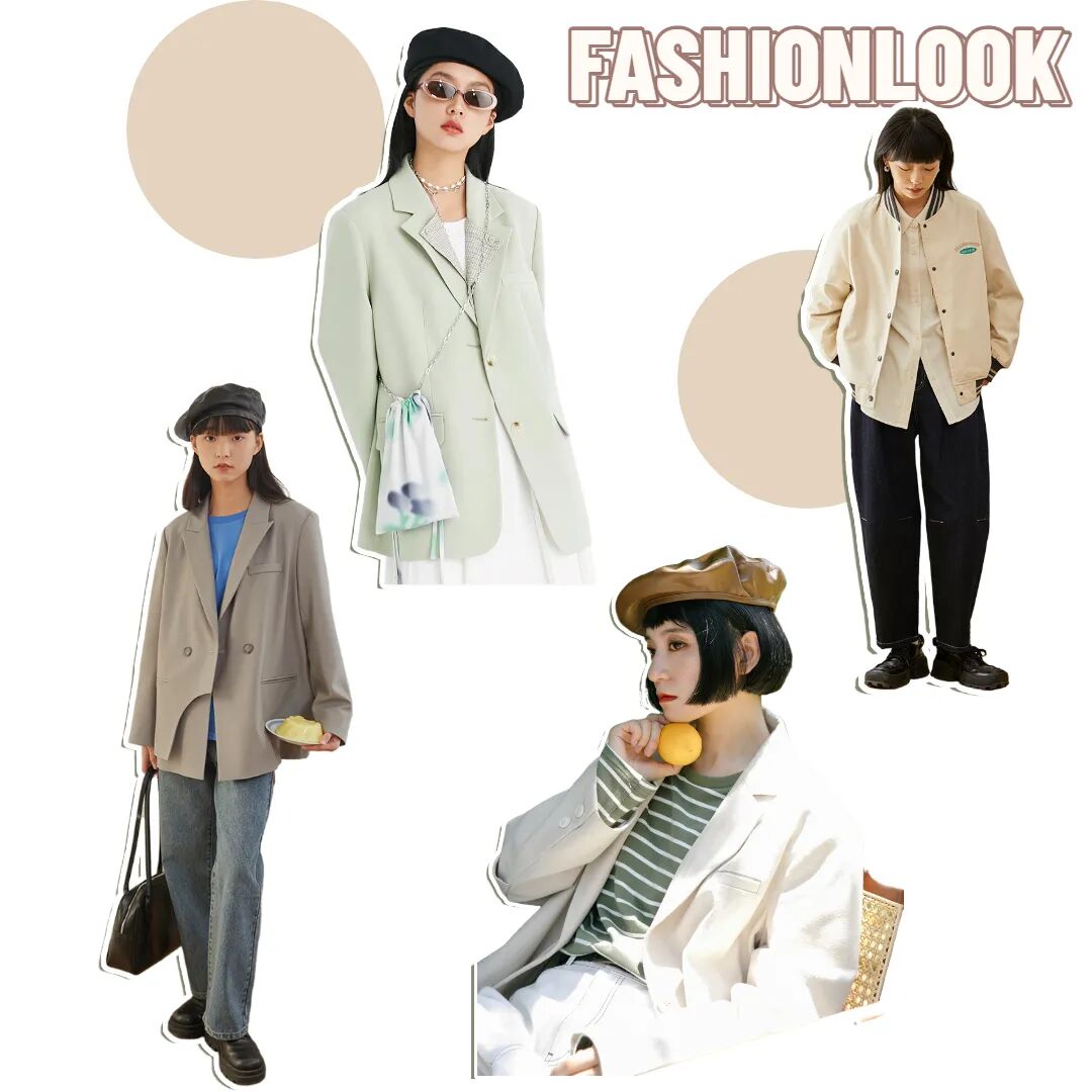 她家西装外套很多,都是基础不出挑的款式,非常适合春天拿来通勤穿,配上模特的羊毛卷和红唇很有复古内味。