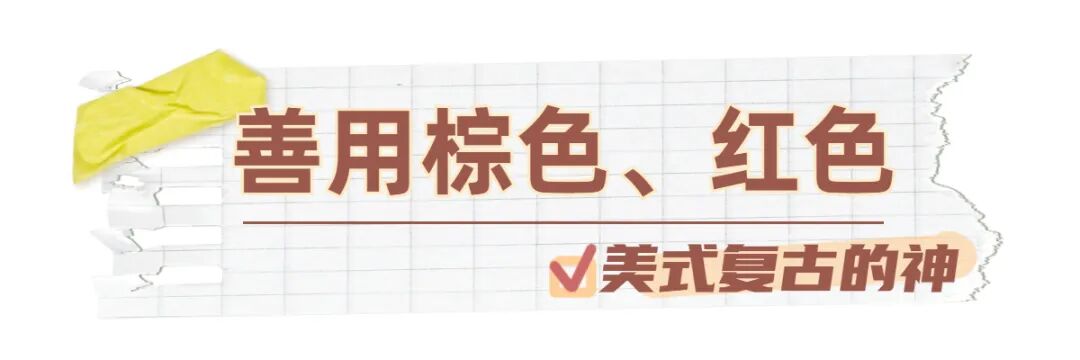 其实不止是Bella,美式复古最大的一个✨亮点就在于棕色、红色的运用,既有美式穿搭的范儿又增添了一些复古的格调。
