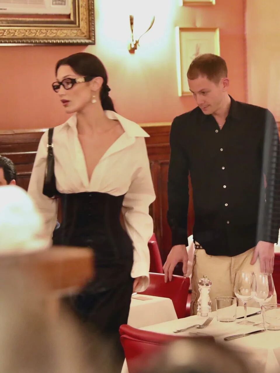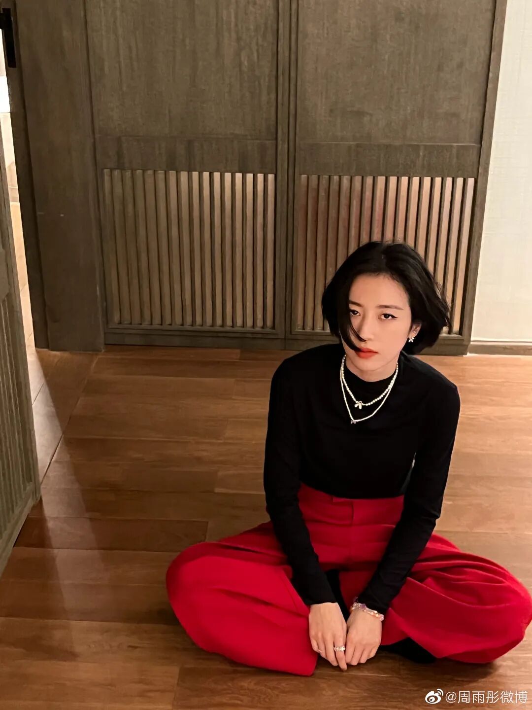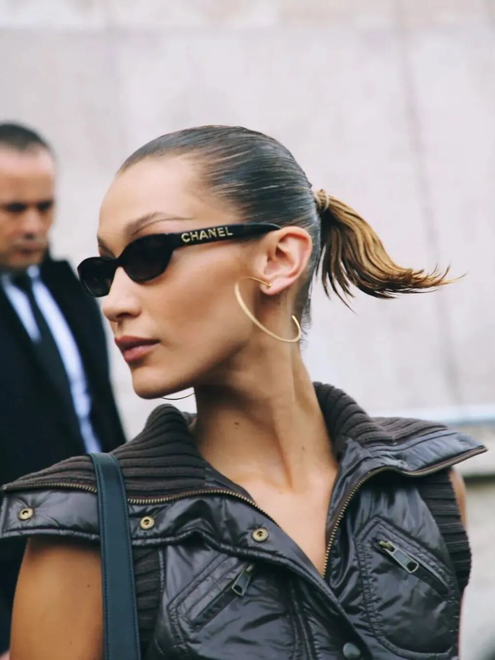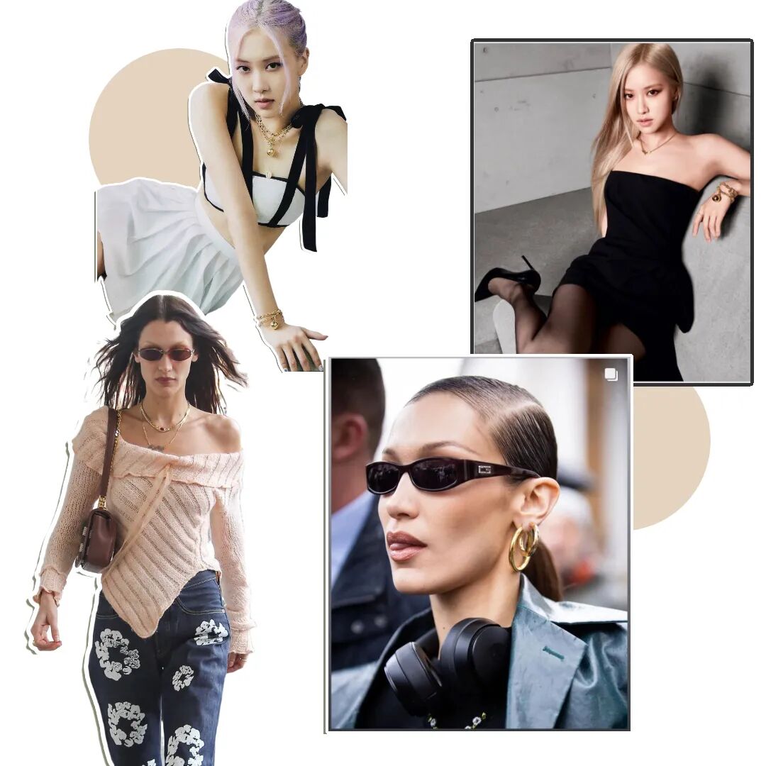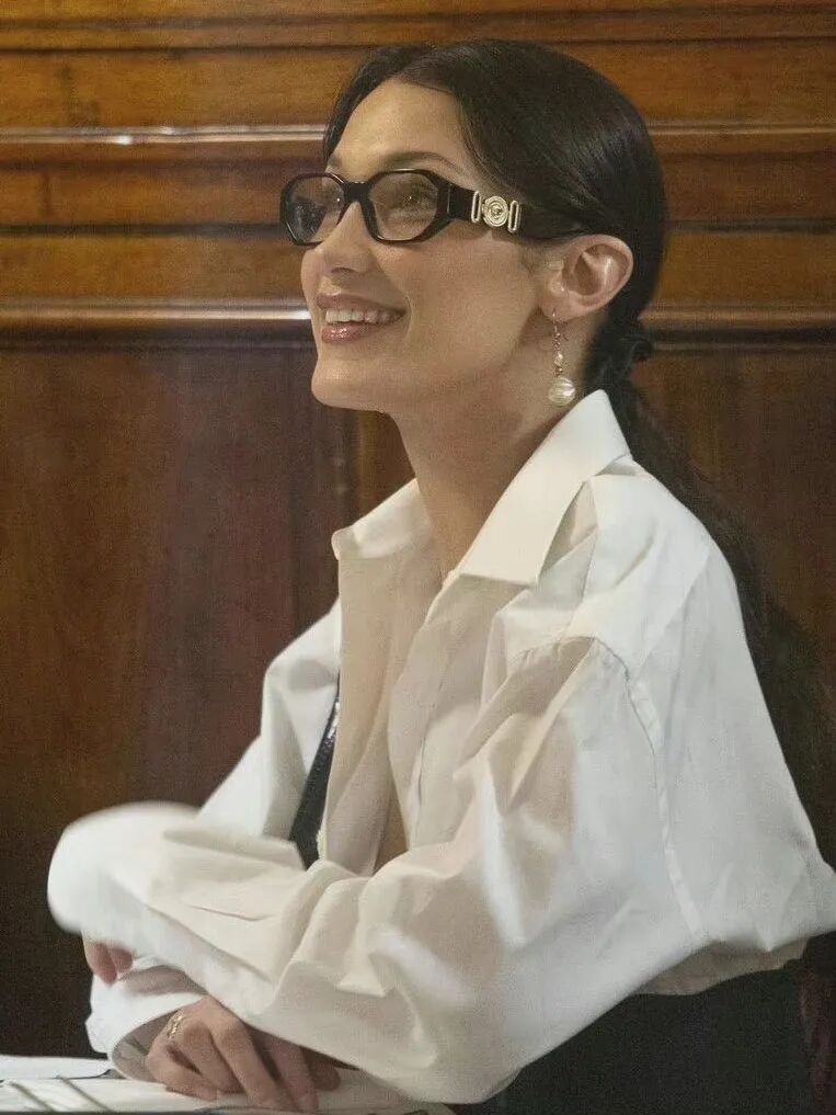 当然除了饰品,金色框架眼镜也是Bella的又一“本体”,她在超多场合都有搭配不一样的窄框,散发出一种时髦女知识分子的气质(还有人说是时髦小姨风👀)。