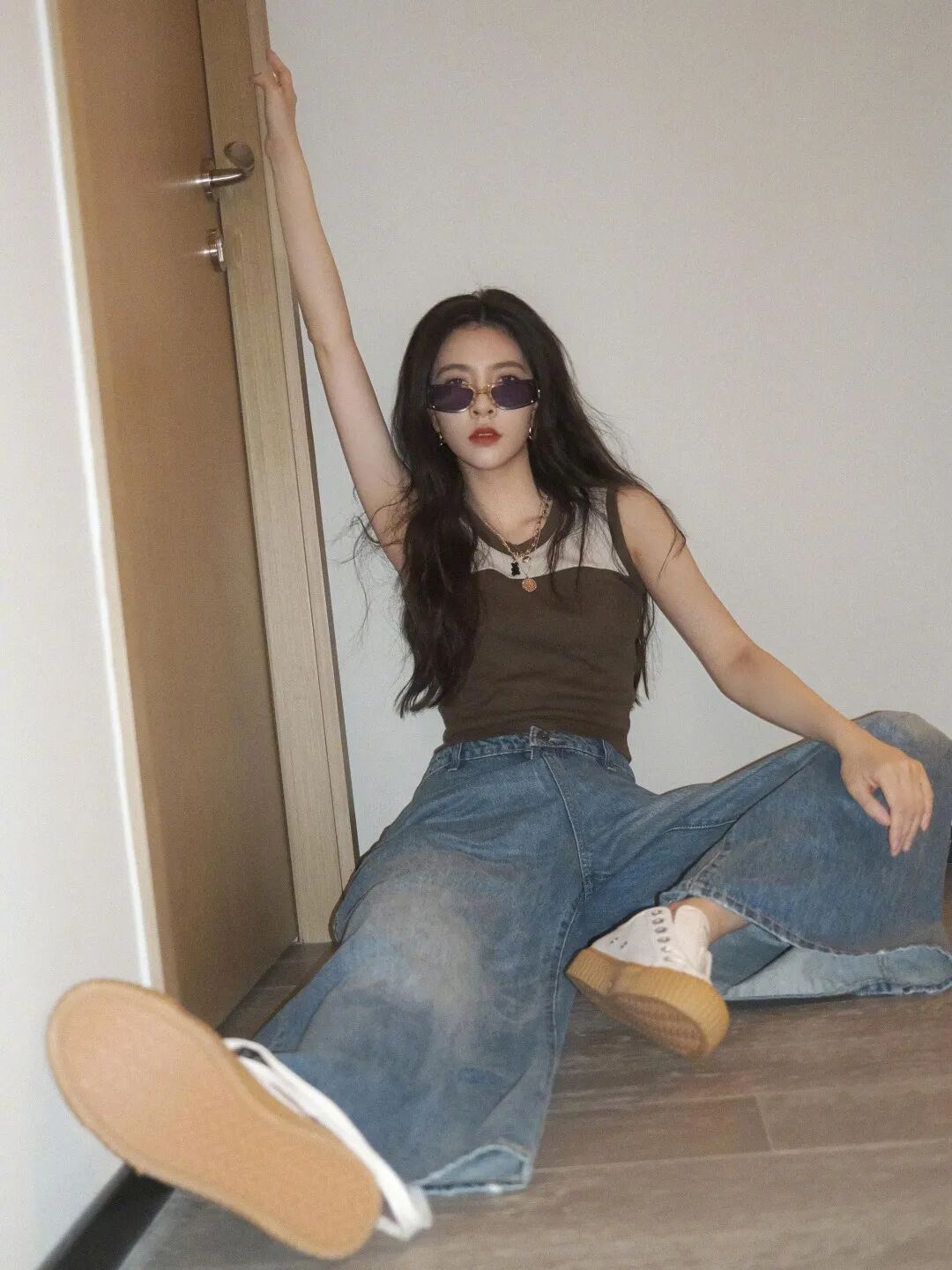 关键是也非常好学,坎肩背心+宽松工装裤or牛仔裤,很有美式校园的feel~