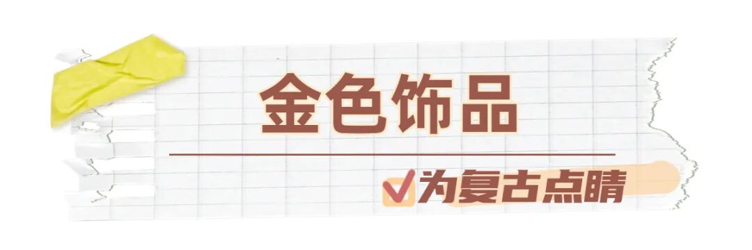 金色饰品还很有“纸醉金迷”、“欲望都市”的味道,在复古的氛围下衬得人华丽贵气~